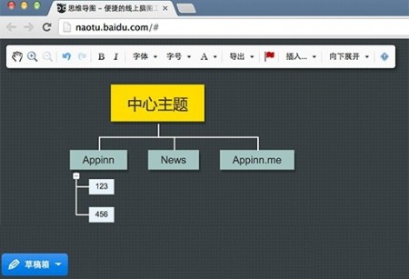 kityMinder 是由百度 FEX 团队开发,基于 BSD 协议开源。另外,kityMinder 可以在线保存到百度网盘,还能在线分享,可以点击这个链接:http://naotu.baidu.com/?shareId=3to5zun8woy