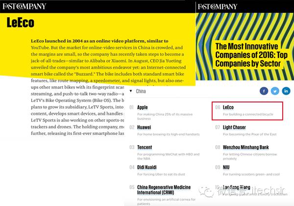 美国东部时间2月16日,美国最富盛名和最具影响力的商业杂志之一《快公司》发布了“中国十大最具创新力企业”榜单,乐视凭借在2015年研发生产智能自行车——乐视体育超级自行车,而成功上榜。这是继1月份独得北美知名科技社区GI Gadgets“中国崛起”大奖后,乐视体育超级自行车又一次在美国大出风头。