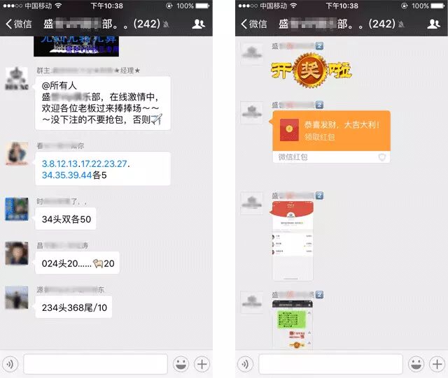 央视也对此现象进行过调查报道。央视记者调查发现,此类赌博群里面发的红包也不是随便领的,需要参加抢红包“猜数字”游戏,押单、双数、或猜大小、或猜尾数,赢了才有资格领取。群里的用户每个人最少都要押50或100元,甚至多达5000元,平均3、4分钟开一次。有的人一晚上就输十几万也是家常便饭…(张俊)