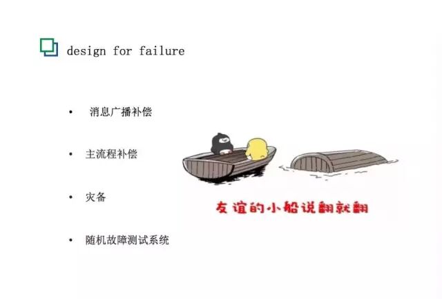 我们也参考他们的做法,有很大的启发,避免失败最好的办法就是经常失败。饿了么的发展速度比非常快,技术还不完善,设计也会有缺口。我个人觉得,一个好的系统或者好的设计不是一开始被大牛设计出来的,一定是随着发展和演进逐渐被迭代出来的。