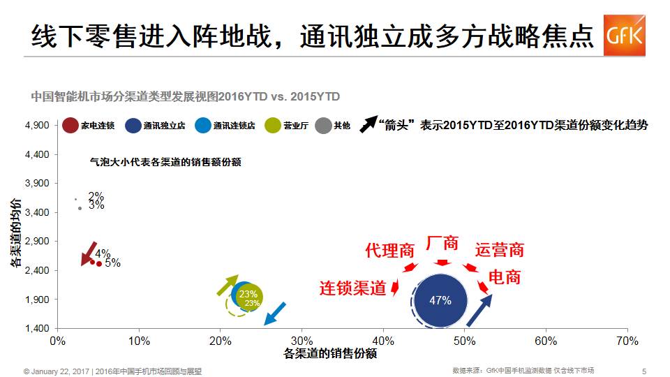 2015年下半年,低线手机市场消费升级下沉,红利集中爆发,推动产业资源向线下、低线市场聚集。通讯独立渠道成为通讯连锁、代理商、厂家、运营商、电商等多角色的战略焦点,多模式跑马圈地,2017年线下零售的阵地战会更加激烈。