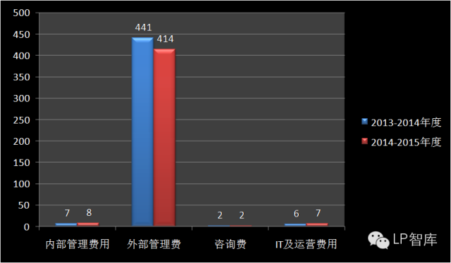 在各项费用中,CalPERS支付给VC/PE基金管理人的管理费是最大的成本支出,占全部费用的96.7%。