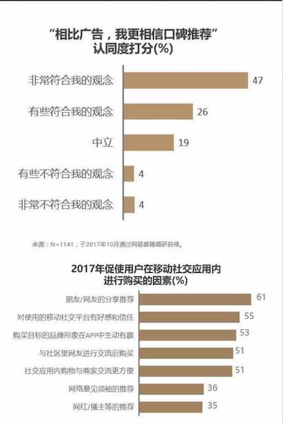 社群群友之间是平等互利的,人人都是kol,他们会彼此交换对商品和公司的看法,由此形成口碑效应,艾瑞统计显示,超过七成消费者认同“相比广告,我更相信口碑推荐”;促使用户在应用内购买商品的第一驱动因素是“朋友/网友的分享推荐”。