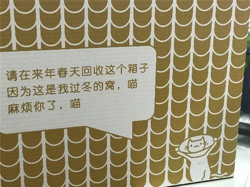 比如,严选的猫奴群友们发现,严选快递箱很结实,可以用来做猫窝,所以严选就把快递箱就改造成猫窝,群友们可以放到小区里面,帮助流浪猫度过寒冬。