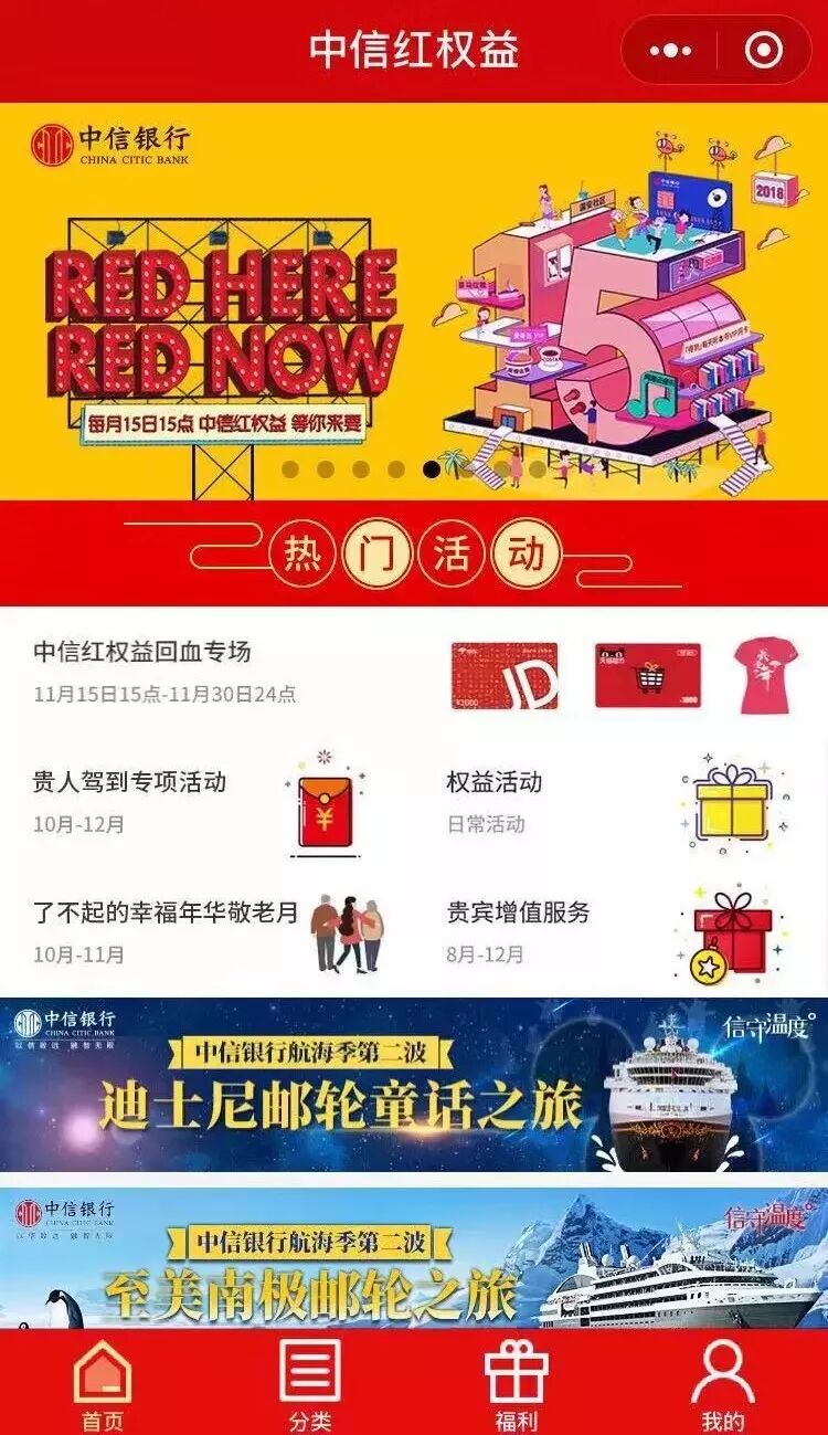于中信银行来说,回归主业的流量池,粉红能量榜单并不是第一个,去年其推出了客户权益平台 「中信红权益平台」,每个月15日作为「权益日」,开放给达标客户领取权益,权益包括观影、美食、生活、消费、健康等多个品类,每个品类都选择前十的品牌打造权益送给客户。到目前为止,这已经是一个上亿流量的平台,每月权益订单平均几百万,中信银行的老客户已经熟知那句口号:「中信红权益,全是好东西」。
