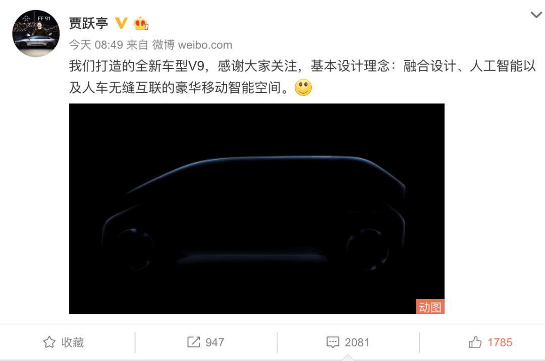 今天上午,贾跃亭发布微博,介绍法拉第未来(FF)即将推出的新旗舰车型V9。