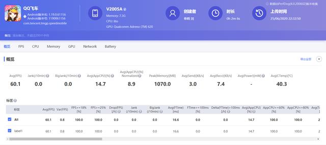 王者荣耀在开到最高画质的情况下,可以达到平均61.3帧,qq飞车在最高画质的情况下可以达到平均60.1帧,并且两款游戏都没有出现卡顿以及严重卡顿的情况 ,这个数据也是非常的理想。