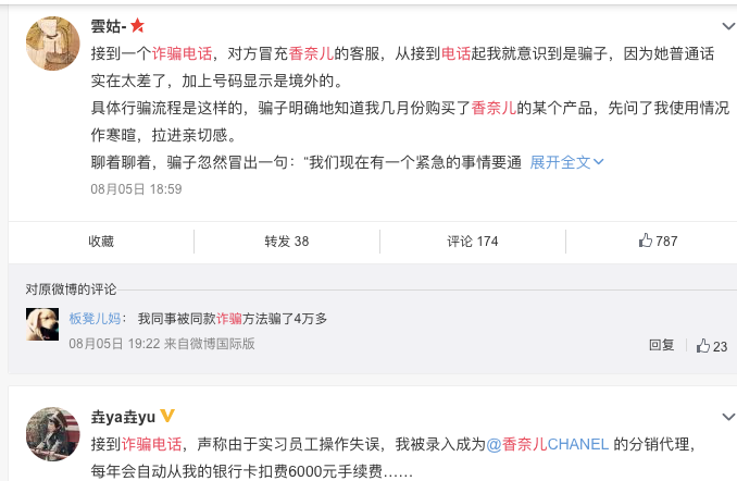 不过,对于众多遭遇诈骗经历的香奈儿用户而言,更倾向于认为是官方内部工作人员泄露信息。对此该质疑,香奈儿官方并没有做任何声明。