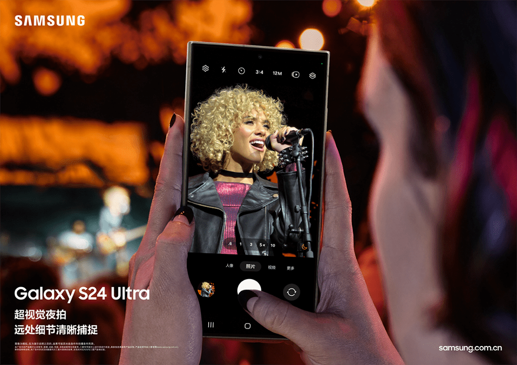 三星Galaxy S24系列搭载由AI驱动的超视觉影像,通过AI赋能的影像体验将贯穿从拍摄到编辑的各个环节,在不同拍摄场景中为用户提供专业影像体验。