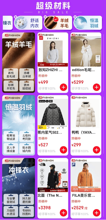 正值换季降温期,购置保暖又时尚的秋冬服饰成为刚需。京东11.11期间,京东服饰带来羊毛大衣、羽绒服、雪地靴、保暖内衣等爆品低至5折,UR、海澜之家、鄂尔多斯、蕉下、百丽等超千家大牌共同参与。为了给消费者带来更确定的购物体验,京东JD FASHION还推出“超级材料”专场,汇聚首梳胎毛绒、赤峰山羊绒、万级防水冲锋衣面料、匠人手挑羽绒绒皇、海藻抗菌内衣纤维等稀缺服装材料,闭眼买不踩雷。更有面料快闪10月20日至26日落地上海上生·新所,提供零距离触摸体验,让消费者沉浸式感受品质服饰魅力。