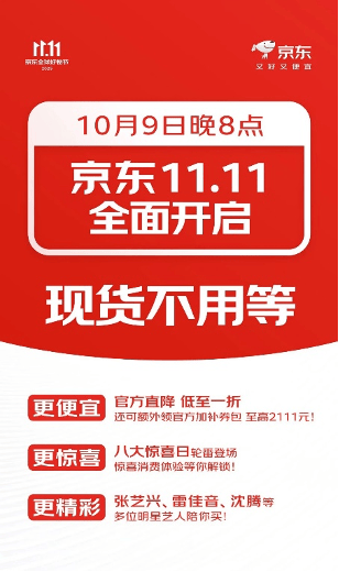 10月9日晚8点,京东11.11盛大开启,现货开卖不用等,官方直降,低至1折!京东服饰美妆始终以丰富好货和无忧服务为核心,全面满足用户在服饰、美妆、运动户外、奢品钟表等全场景的多重时尚消费需求。即刻打开京东APP,搜索“服饰美妆1111”,开启专属于你的惊喜之旅!
