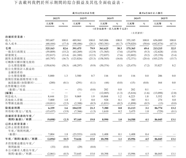 受此拖累,集团整体毛利率从2022年的82.6%暴跌至2025年上半年的32.5%。虽然集团营收从2022年的3.94亿元增长至2025年上半年的6.56亿元,呈现出快速增长态势,但净利润却波动剧烈。这种以牺牲毛利率为代价换取的营收规模增长,暴露了其新业务模式在盈利能力上的脆弱性。