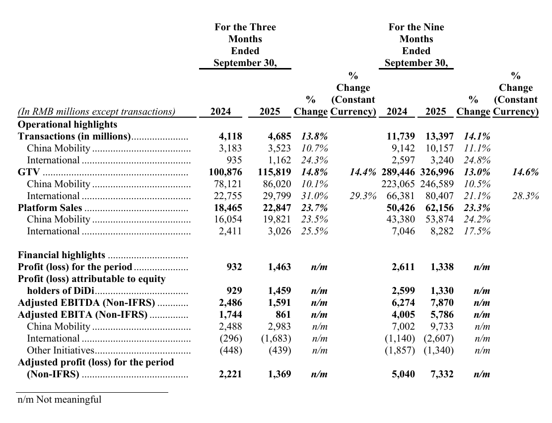 11 月 26 日消息,滴滴今日在其官网发布 2025 年第三季度业绩报告,三季度滴滴订单量和 GTV(IT之家注:总交易额)仍保持双位数的稳定增长。