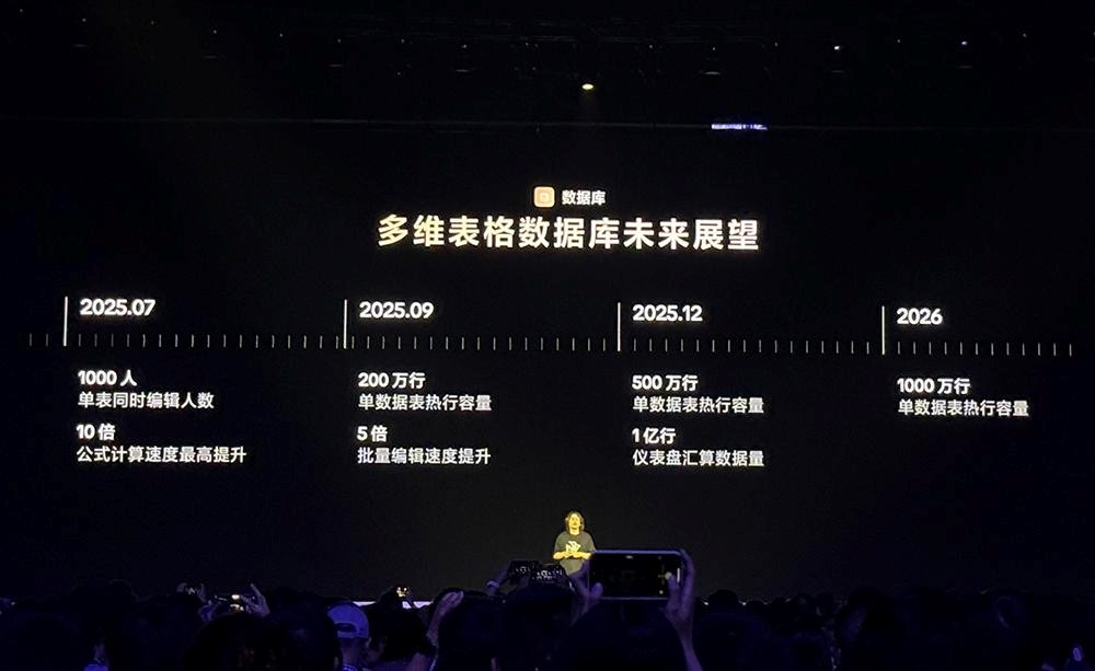 钉钉也不甘示弱,飞书崭露头角时,就有市场传闻,钉钉内部推出了“翻书计划”。8月份,钉钉AI表格的负责人在“钉钉AI格的分论坛”上提及飞书,展示相同业务场景下,100万单表数据全量计算速度对比。