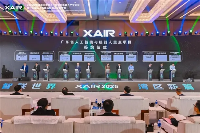 大会现场举行了广东省具身智能训练场、国产计算芯片生态适配中心、开源鸿蒙适配中心、广东省工业机器人与智能家居应用赋能中心授牌仪式和广东省人工智能与机器人重点项目签约仪式,并正式发布广东省具身智能训练场“1+1+N”体系、2025年广东省人工智能与机器人典型应用场景案例、《2025年广东省人工智能与机器人产业发展白皮书》暨《AIR 珠江指数报告(2025)》。