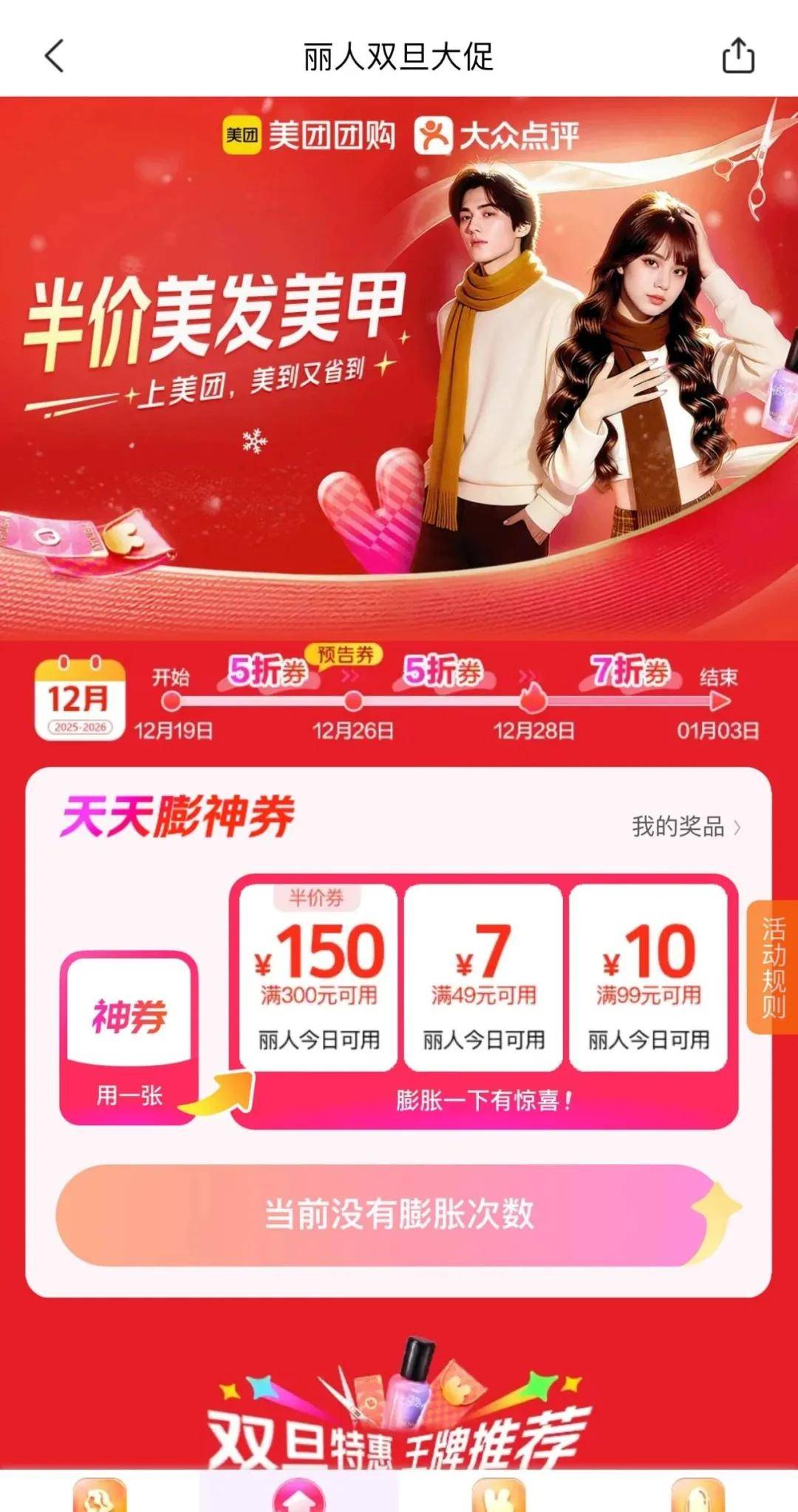 针对美发美甲行业年底爆发与消费者实惠诉求的消费特点,美团出手了。12月19日-1月3日,美团开启半价美发美甲活动,有机会膨胀300减150元、200减100元、100减50元、60减30元等神券,打开美团、大众点评搜索【半价美发】【半价美甲】即可参与这场美丽半价冲锋。