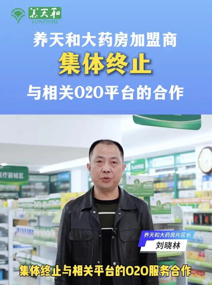 然而,就在线下药店纷纷拥抱即时零售的当下,一家区域中型连锁药店养天和大药房却在社交平台突然发布声明,态度坚决地称“药店加盟商集体终止与相关O2O平台的合作”。这一令人意外的消息犹如平地一声雷,炸响了整个行业,迅速引发热议。