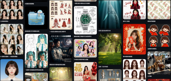 “无限画布”的模块化设计大幅降低了AI创作的门槛。对初学者而言,这里没有复杂难懂的传统工作流结构,只有清晰的逻辑与拖拽化的操作方式。此外,平台提供了多个爆款热门模板,可以直接复用,让零基础的用户也能在短时间内理解AI创作的底层逻辑,并动手生成自己的专业级作品。