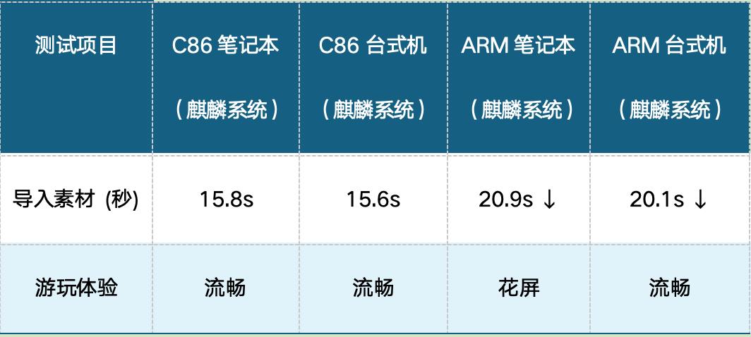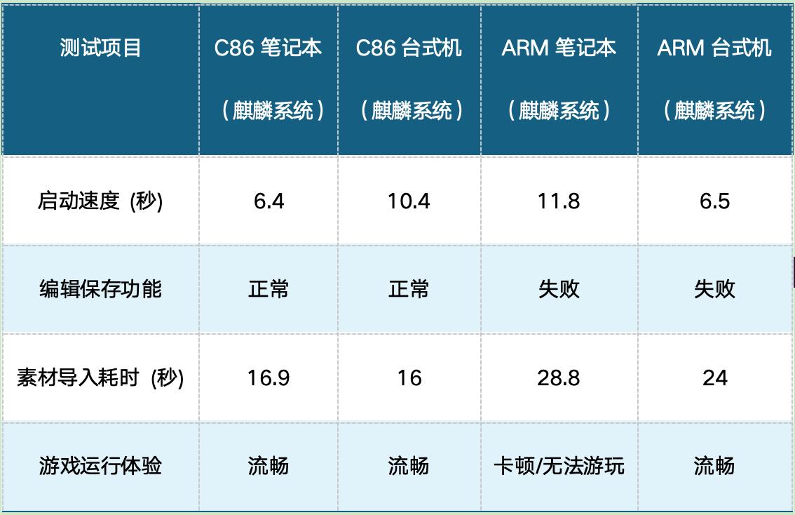 Mind+少儿编程测试中,C86笔记本启动仅需6.4秒,ARM笔记本需11.8秒;ARM机型“编辑保存”功能直接失败,C86全程正常;素材导入C86耗时16.9秒,ARM高达28.8秒。