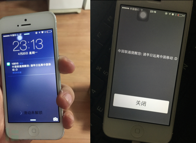 下图左侧是我以中国联通10010的身份,伪造下发的短信,注意看时间是在2015年4月20日。右侧是伪造的欢迎闪信(Flash SMS)