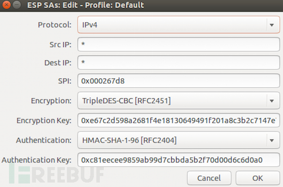于是,打开Wireshark,在抓到的ESP(Encapsulating Security Payload)包上面,右键,将上述输出中的Enc key填写到Wireshark的Encryption Key字段,将上述输出中的Auth key填写到Wireshark的Authentication Key字段中。