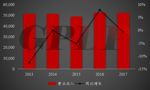 2017年诺华净销售额为491亿美元,同比增长1%,核心营业利润率下降了0.3%,主要是Gleevec/Glivec竞争所导致的。