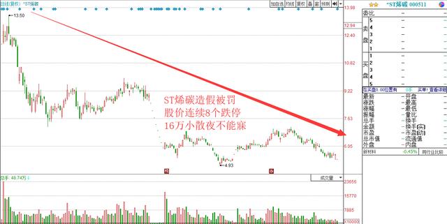 ST烯碳的高管们被罚之后,公司的故事再也讲不下去了,复牌后股价连续8个跌停,而不幸的是,越垃圾的股票炒的人越多,ST烯碳里面有16万股民,很多人都是为了捡便宜抄底的想法买入的,如今到了这个时候,很多股民表示自己晚上睡不好觉,每天都不敢看股票账户。