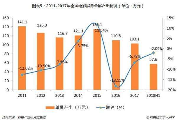 根据前瞻产业研究院数据,自2015年至2018年上半年,全国屏幕单屏产出一直成下滑趋势。显然,院线扩张拉动票房增长边际效应已经在逐步递减,这无疑为影院将来的生存埋下了隐患,一旦电影市场面临冲击,处于日渐白恶化竞争中的院线将会面临极大的生存挑战。