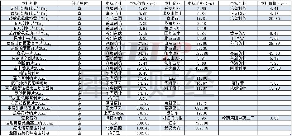 GPLP犀牛财经观察显示,从结果来看,此次带量采购中标价格大超市场预期,药企纷纷杀价,比如阿托伐他汀10mg规格,齐鲁制药报价1.68元/盒;硫酸氢氯吡格雷片,石药集团报价34.12元/盒,赛诺菲报价17.81元/盒;乐普制药报价20.85元/盒。