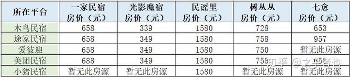 知乎用户“之乎者也”分别对Airbnb、途家、木鸟、小猪以及美团等主流民宿预订APP进行了测评,对比4个不同城市的4套相同民宿同一入住时期的预订价格,综合各家价格差来看,木鸟民宿展示的价格相对较低一些,途家民宿次之,爱彼迎价格相对较高。