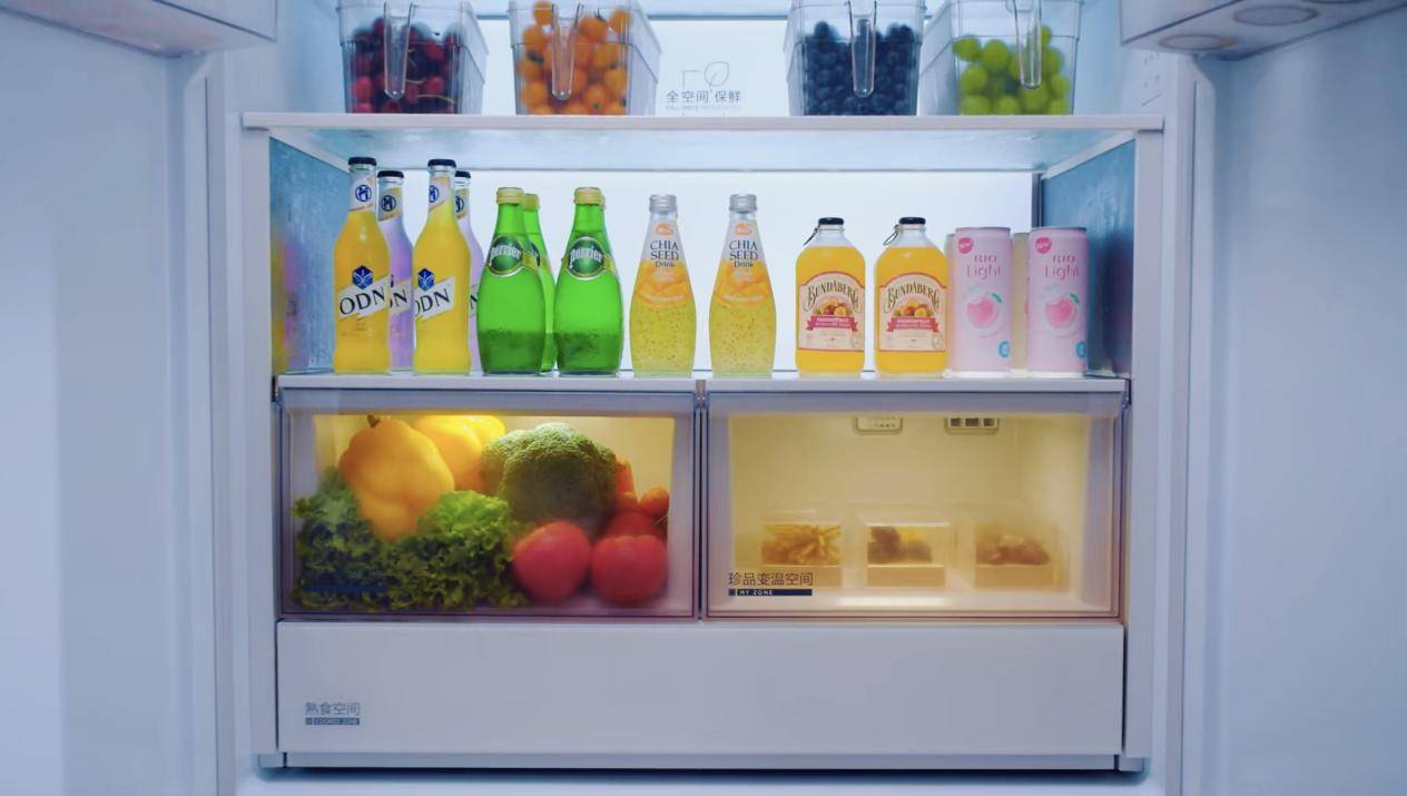 在收纳方面,原创M5格局依据食材特性科学规划9大分区,如果蔬区、饮料区、熟食区、母婴变温区、磁控鱼虾区等,让用户实现轻松高效的「松弛感收纳」。