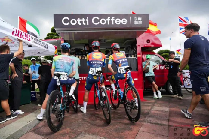 广西,2025年环广西世巡赛的终点线前,当冠军骑手高举双臂时,赛道旁那辆红色咖啡车正冒着热气。穿着骑行服的观众排着队,接过印着赛事logo的咖啡杯,刚冲好的美式仿佛被欢呼二度加温;