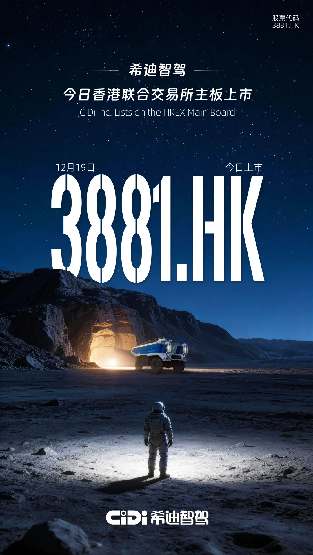 2025年12月19日,希迪智驾(03881.HK)正式登陆香港联合交易所主板,成为港股首家专注于商用车智能驾驶的上市公司,同时也是第七家通过港交所18C章规则上市的特专科技企业。