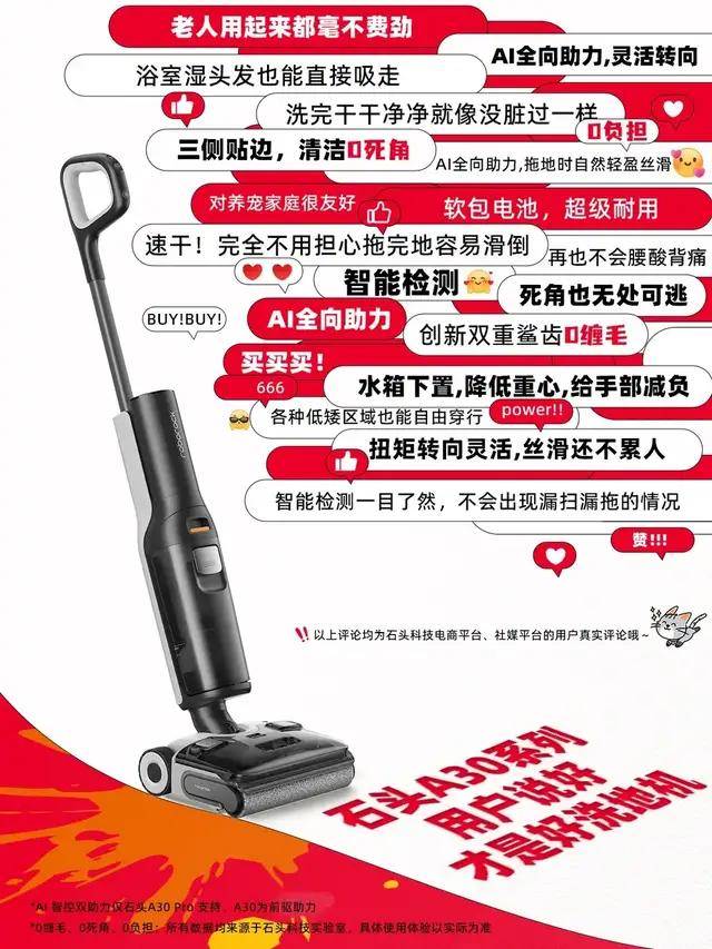 从 A30 Pro Steam 的蒸汽热水洗地能力,到 A30 2.0 在 95℃ 高温自清洁与全链路 0 异味系统上的持续进化,石头洗地机完成的并不只是功能升级,而是一种产品角色的转变——从解决地面问题的清洁家电,逐步走向家庭健康管理的重要节点。