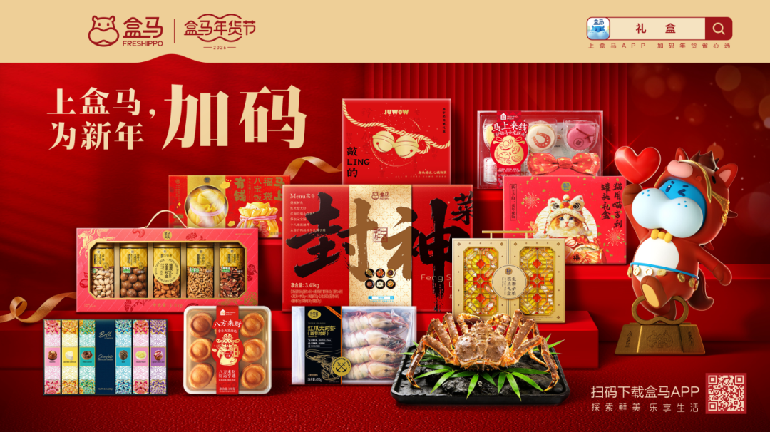 正是盒马的供应链能力让这些来自全球供应链的好物与中国的春节及时融会贯通,赋予了我们年货一种新的趣味、新的体验。过去⼗年中,盒⻢鲜⽣在消费者心智中的生态位已经逐步锁定,这里有“鲜美”有“新奇”有“高品质”有“烟火气”,构建起来一个东方社会的现代性场景。