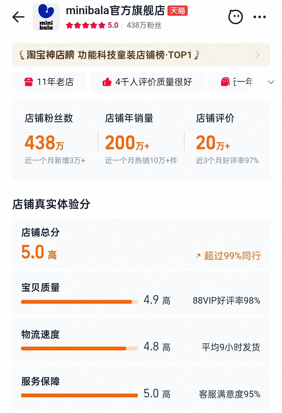为了激励重视服务的优质商家,淘宝天猫2025年上线了新版店铺评价体系“真实体验分”。截至12月31日,真实体验分高分店铺成交额8个月内提升25%;平台五星店铺从原来的9000家增加到了现在的16000家,Mini Bala也是其一。