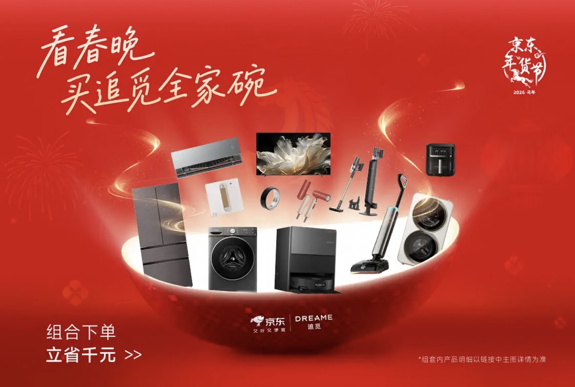除了机器人,春晚同款智能家电也重磅登场。作为2026年央视春晚智能科技生态战略合作伙伴,追觅携手京东推出“全家碗”智能家电套装,包含洗地机H20 Ultra旋锋版、无雾空气净化器H40、扫地机S50增强水箱版三款爆款产品,除夕当晚8点以2026元惊喜价首发,直降超万元,一站式搞定家庭清洁与空气净化,用科技提升居家幸福感。