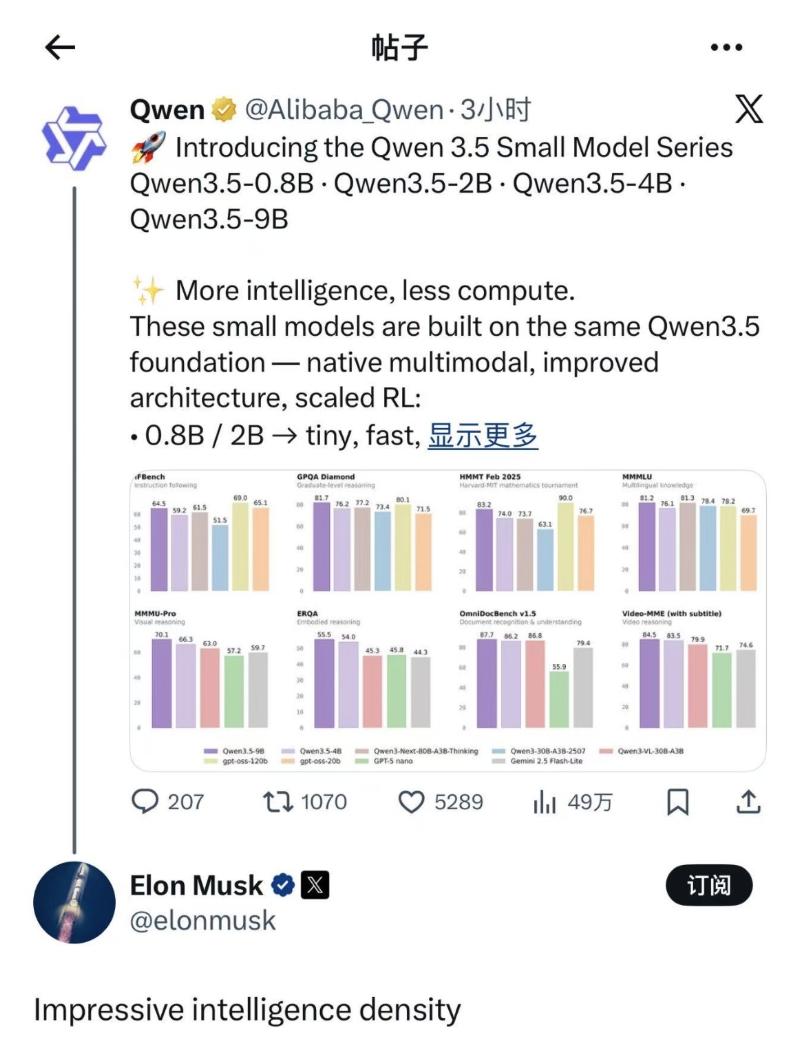 就在几天前,阿里低调开源了4款Qwen3.5系列小模型,直接惊动马斯克公开点赞,“智能水平令人印象深刻”。