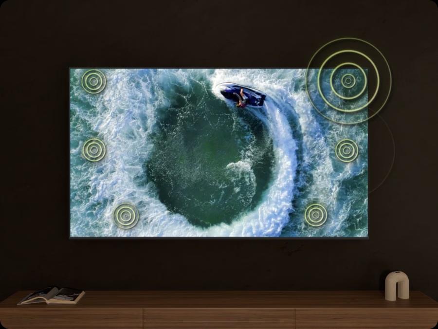 过去很多人都会觉得家里的电视没有大荧幕的真实感,一个很关键原因或许不是画面,而是声音,就比如画面里一辆车从左开到右,在电影院声音会跟随画面移动,而家里的电视上声音却还是从电视两边出来,极大影响了观影体验。这就是典型的“音画不同步”,眼睛和耳朵接收的信息对不上,沉浸感立马打折。