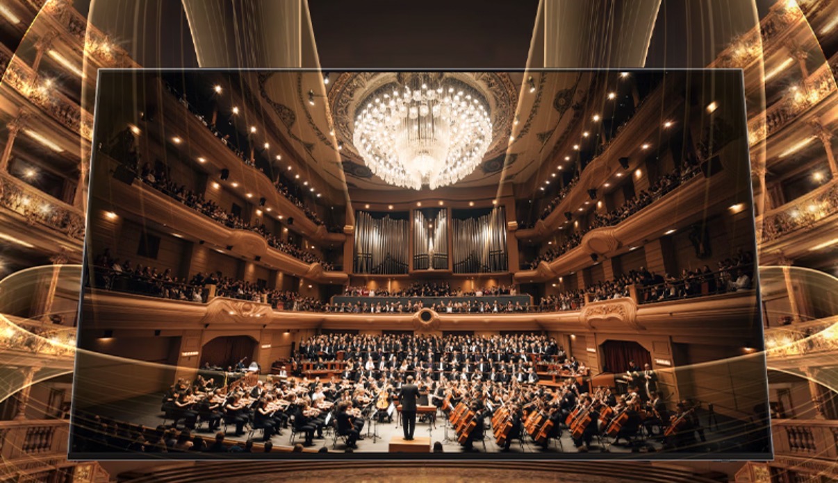 同时,它还配备了Q交响乐技术,用户可以将电视扬声器和外接的三星条形音响协同工作,这不是简单的叠加,而是构建一个有层次、有方向的立体声场。再配合杜比全景声打造的包裹式空间声场,以及通过智能控声AVA Pro技术智能分析环境噪声从而提升人声对白清晰度,真正还原大荧幕前的视听体验。