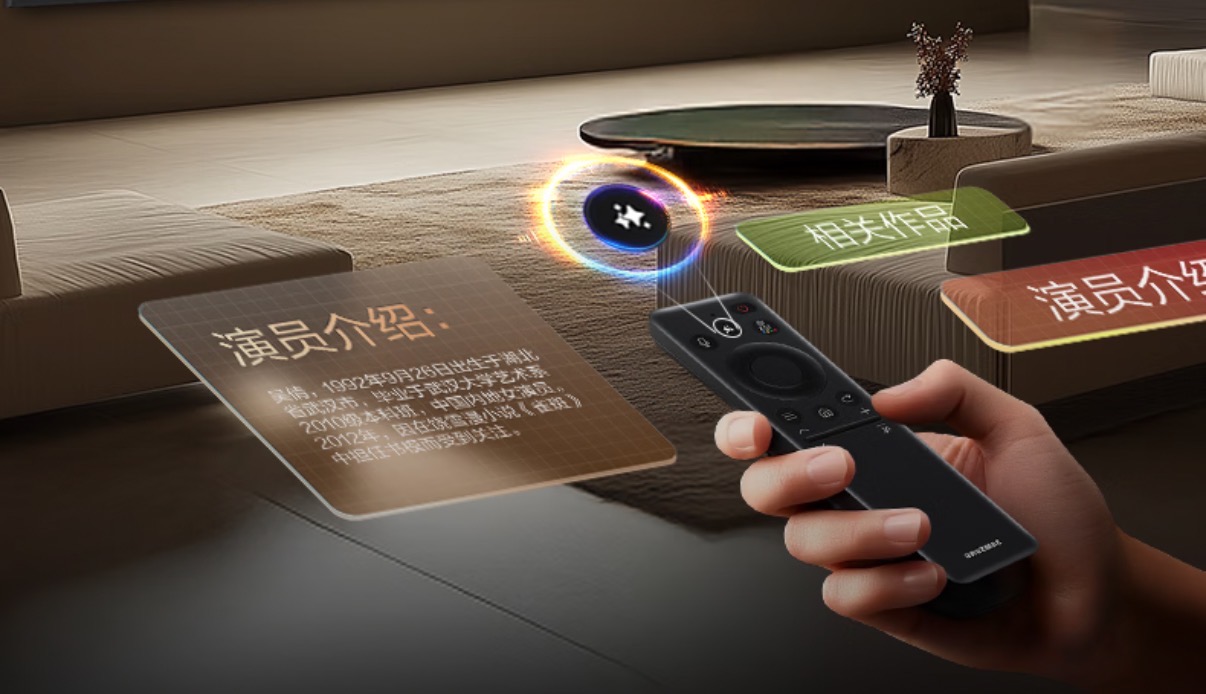 比如其搭载的三星小贝智能语音助手,支持智能问答、媒资内容深度搜索,还能提供自然的语音反馈等。还有适合年轻人的AI观看模式,可以智能识别观看环境和内容,优化画面和音效。此外,用户还可轻触遥控器上的物理按键进入“小贝AI视界”,识别当前播放内容中的人物信息,看剧时想知道这个演员还演过什么,不用掏出手机搜,电视直接告诉你。