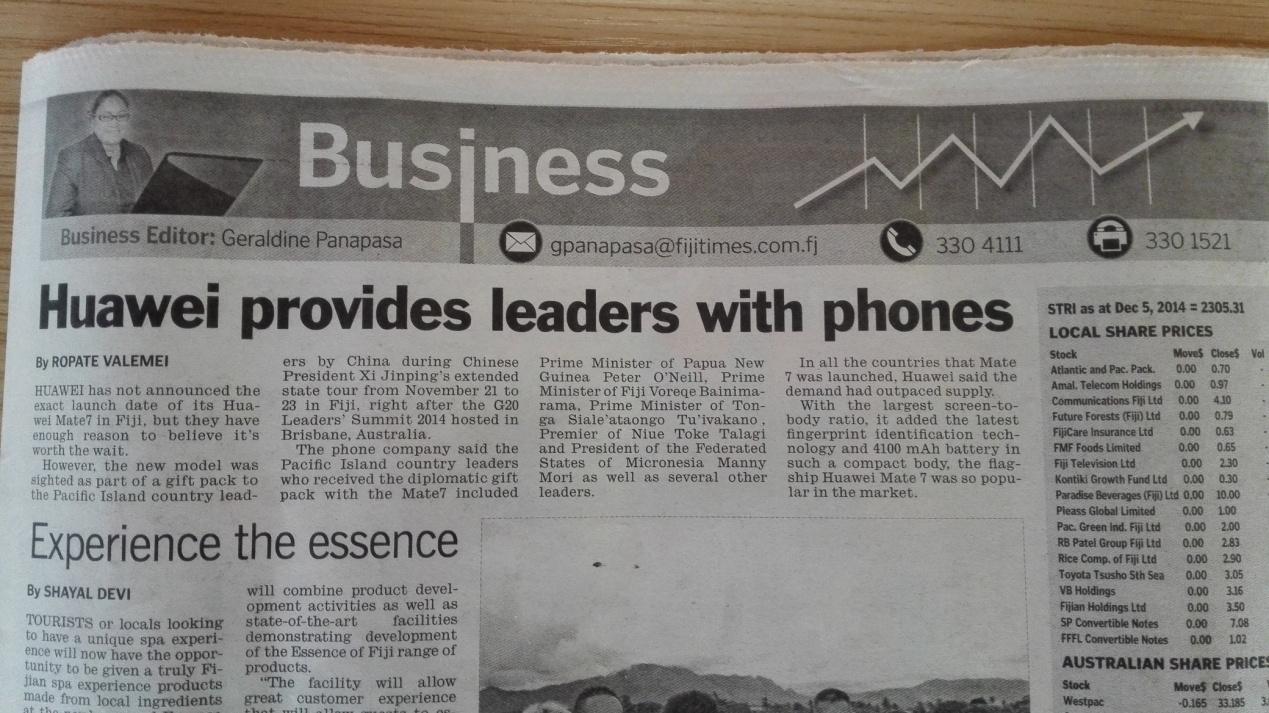 习大大还将最近红遍全球的华为Mate7纳为国礼赠送给太平洋地区国家领导人,包括:巴布亚新几内亚总理奥尼尔、斐济总理姆拜尼马拉马、汤加首相图伊瓦卡诺、纽埃总理塔拉吉、密克罗尼西亚总统莫里等
